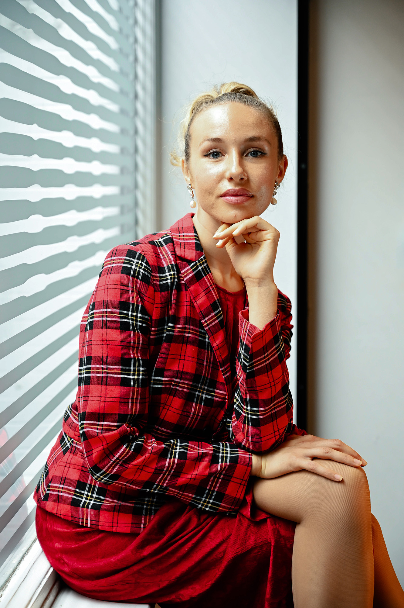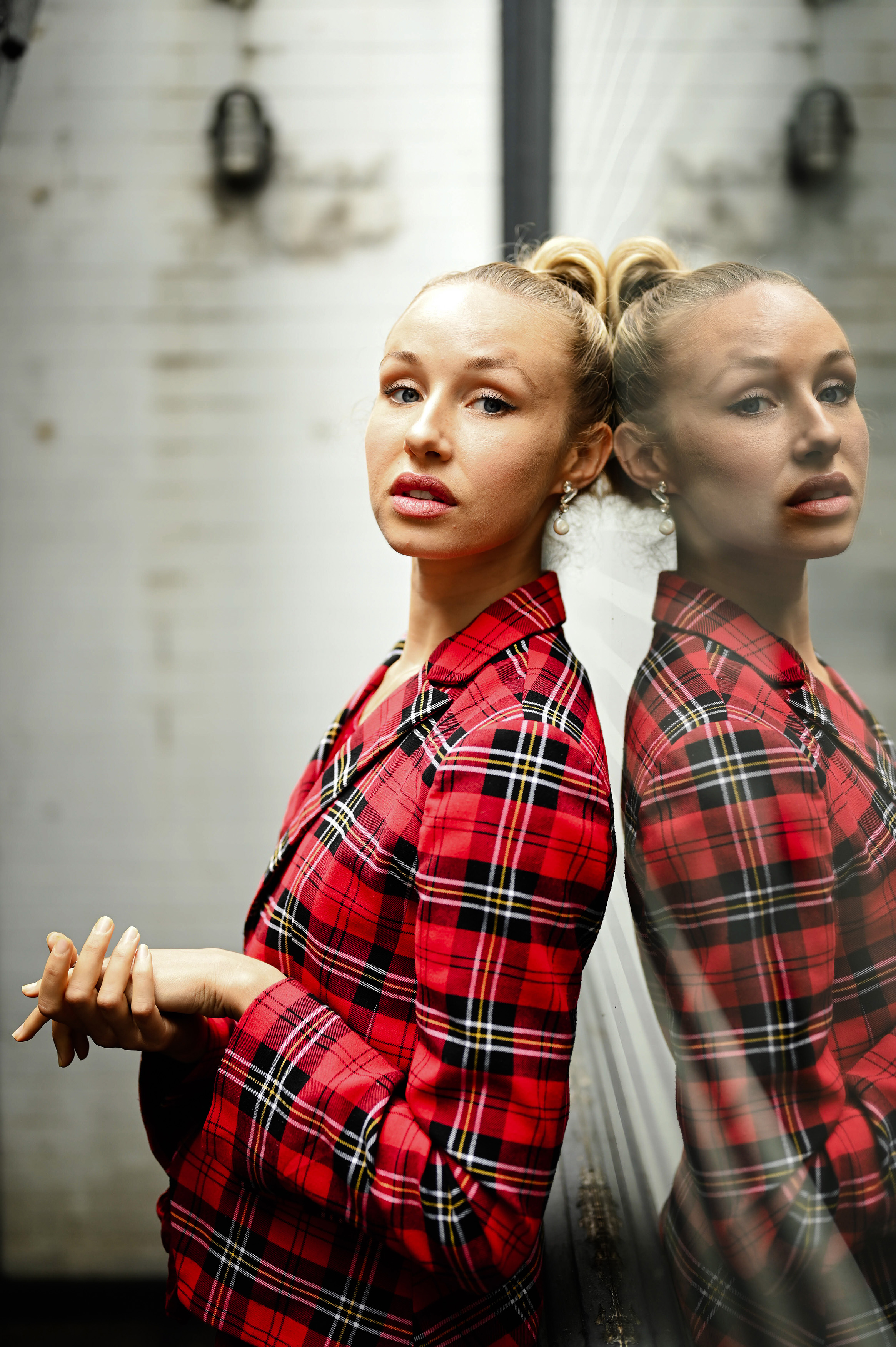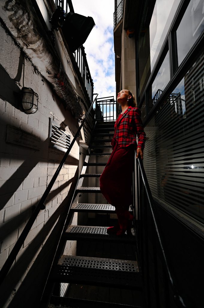 For the first in a series of photoshoots with Actress/Model Jamey we took a combination of indoor and outdoor shots. On the Day Jamey wore a red tartan jacket which contrasted well against the plain background used. we opted for applying a vintage look to the indoor shots (which can be seen below).