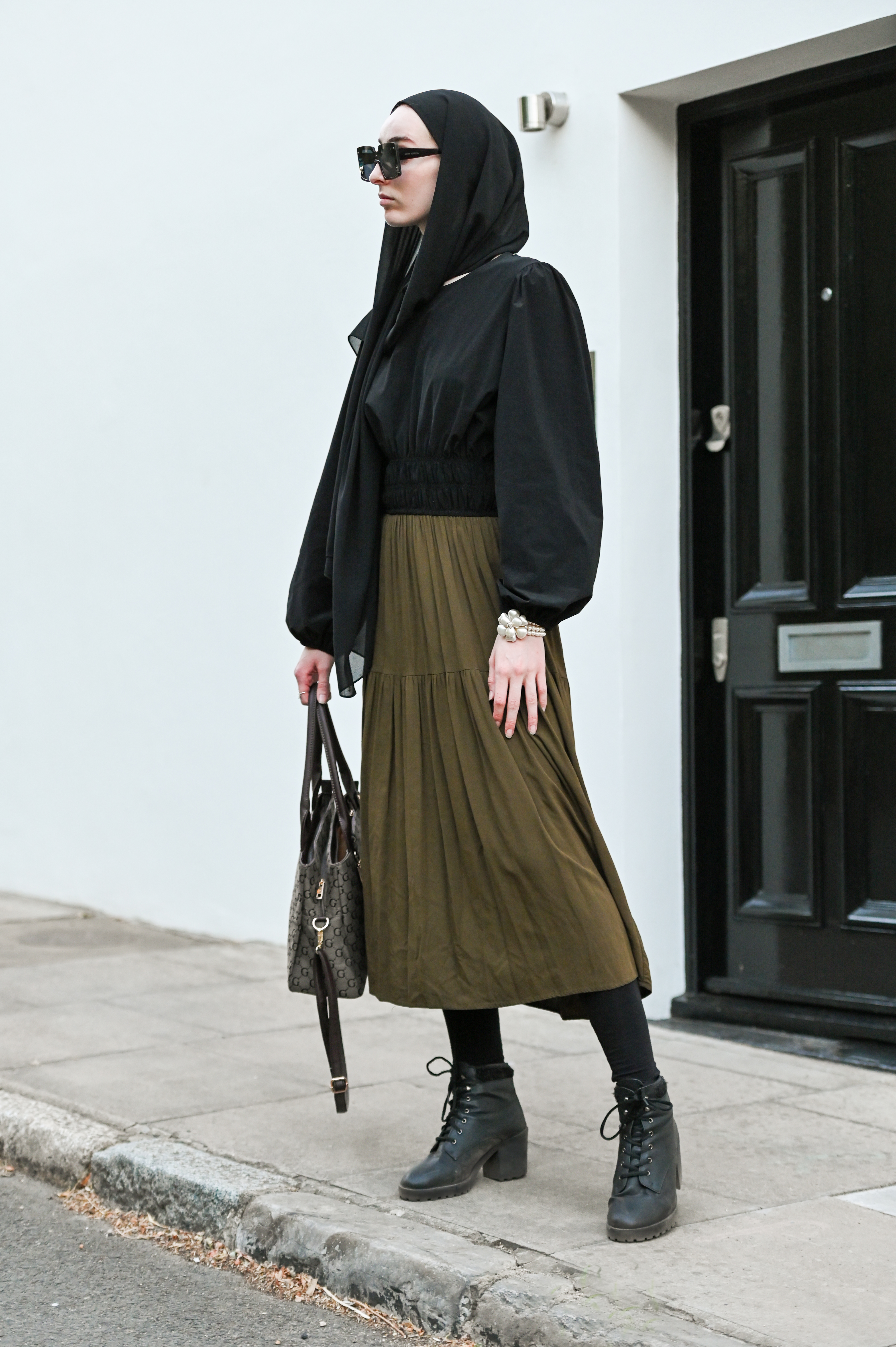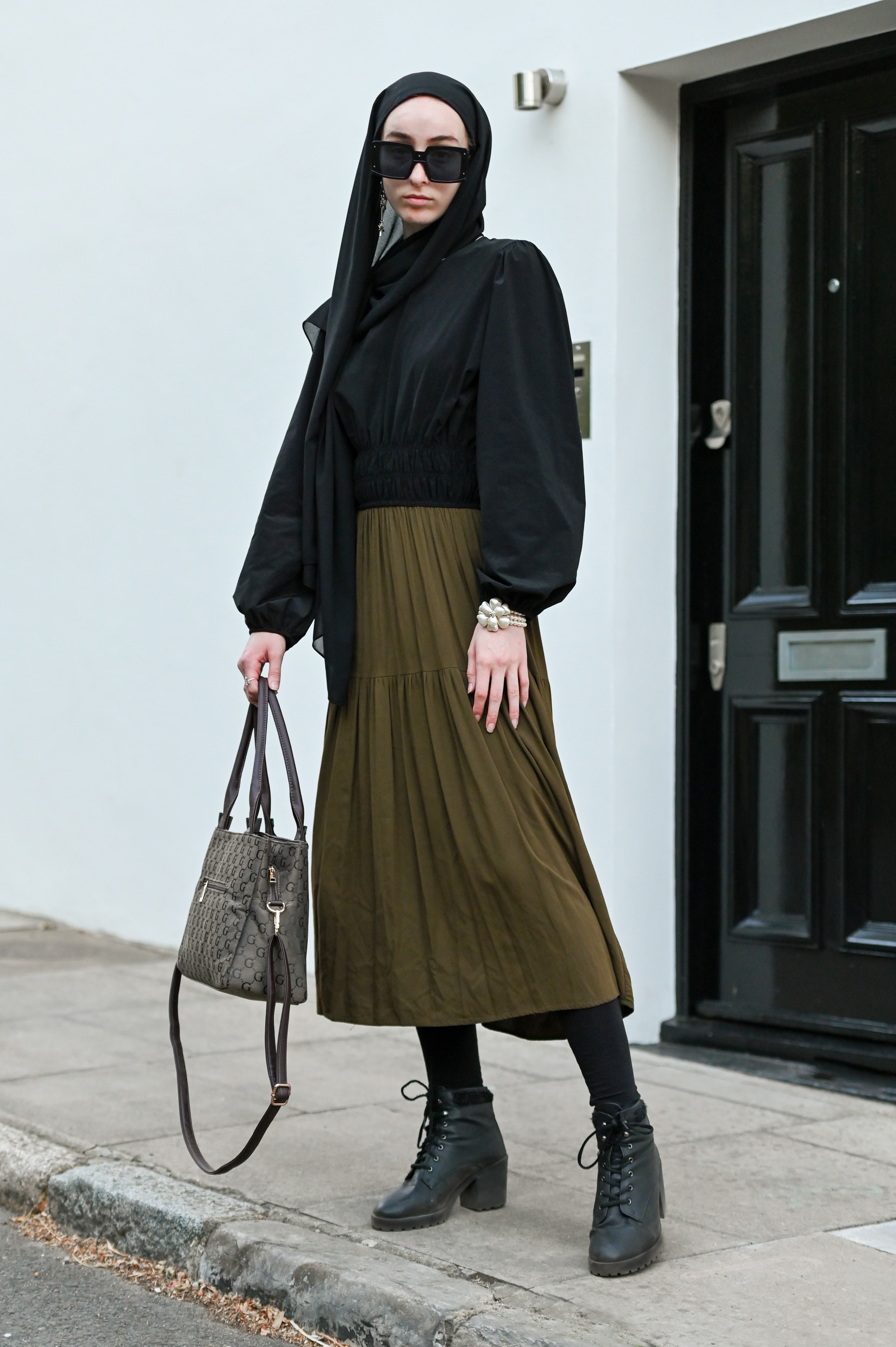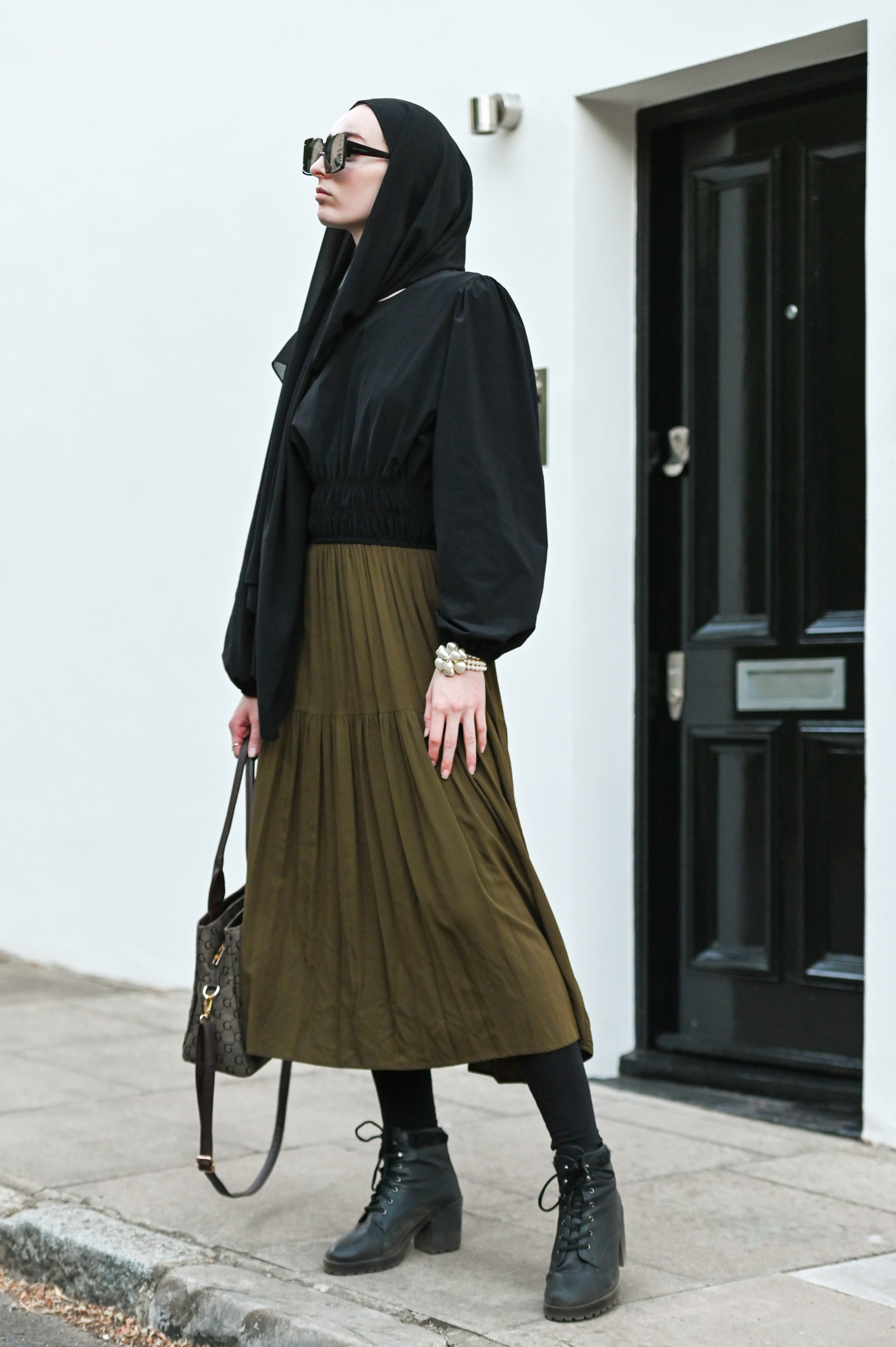 And finally, we then shot some chic looks through using a sleek black hijab outfit. The coloured skirt served to add a slight degree of colour in otherwise neutral colour dominated set up. It should be noted that this was a brief second shot whereby lighting, or lack of it. Sample shots can be viewed below.