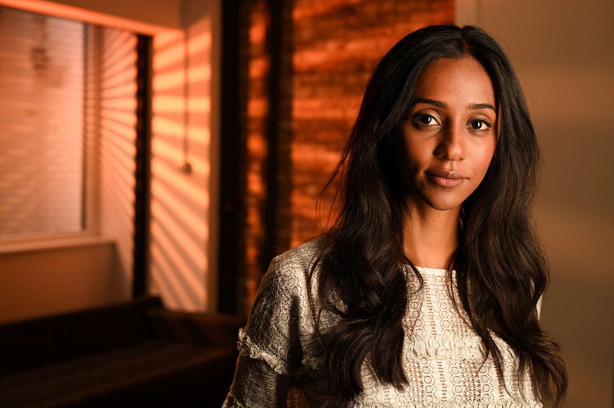 Once indoors, we proceeded to continue with close up headshots in our studio (below). Here we measured and adjusted a multiple variables to ensure that our subject was kept sharp, well seperated from the background with shadows being kept soft.